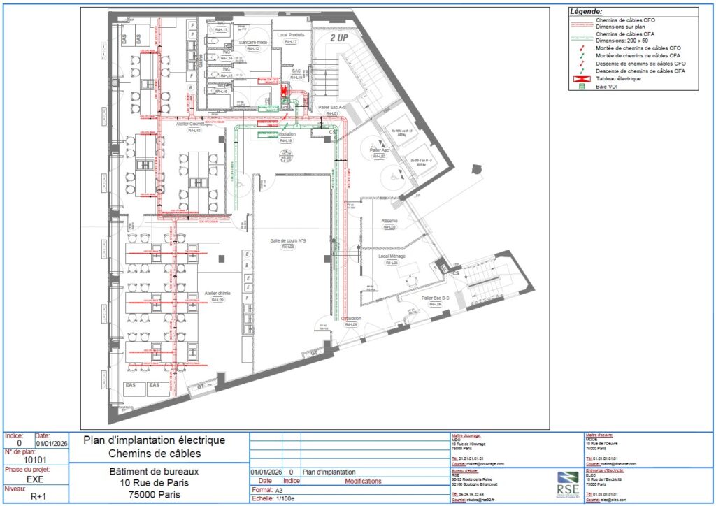 Les plans d’implantation et d’exécution sont essentiels au bon fonctionnement de l’installation électrique afin de prévoir les différents appareillages nécessaires et de permettre le dimensionnement de celle-ci.